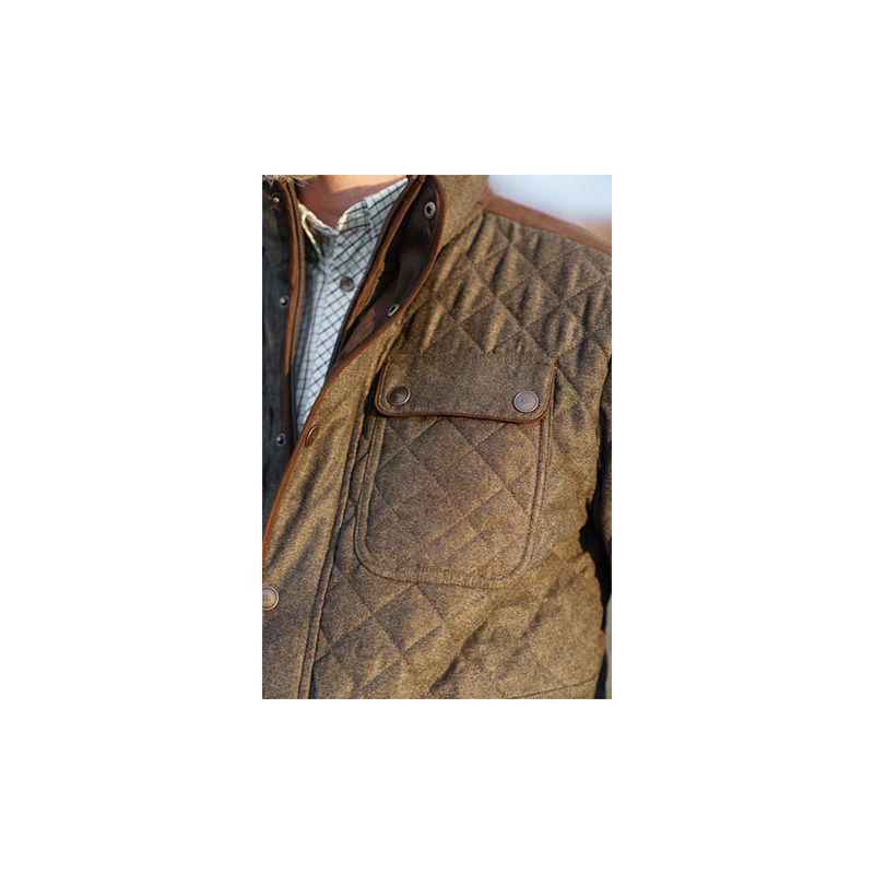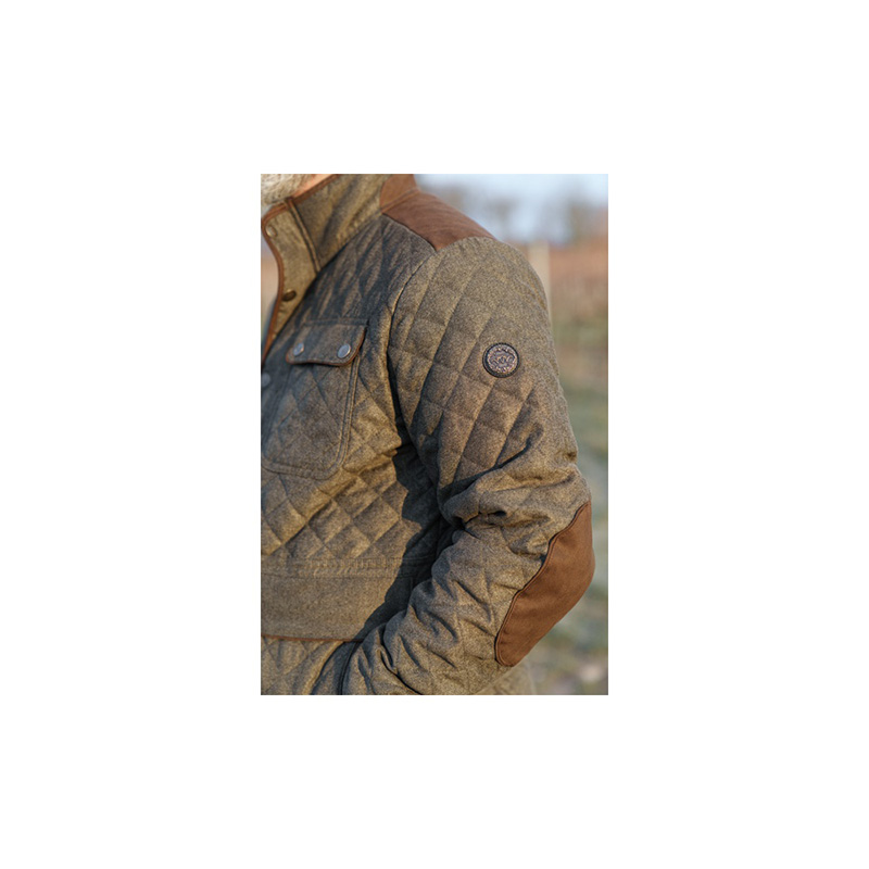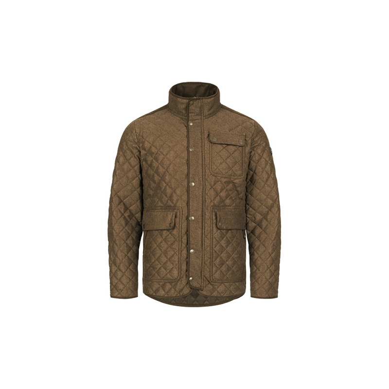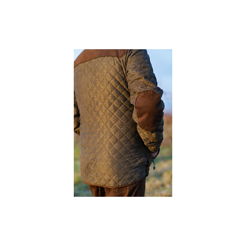 Bunda kombinuje exkluzívnu Vintage látku Blaser s vložkami zo semišu. Telo a rukávy bundy prešívané v tvare kosoštvorca, 1 vrecko s chlopňou vo výške hrudníka, 2 vrecká s chlopňou a zipsom v spodnej časti, semišové lemovanie na hornom golieri, na chlopni, na manžetách a na spodnom leme, logo Blaser na ľavom rukáve.