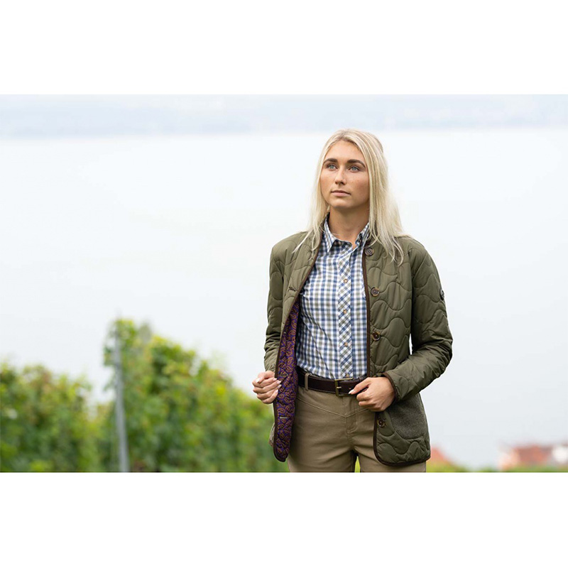 Módna, kockovaná košeľa Juna je vyrobená zo zmesi polyesteru a bavlny, dobre sa udržuje, rýchlo schne. Košeľa má dámsky strih, vpredu aj vzadu záševky, vďaka ktorým košeľa pekne sedí. Nechýbajú ani záševky v oblasti pŕs. Košeľu zdobí náprsné vrecko s logom Argali na koženkovom prúžku. Výborne sa hodí k bunde Leonie a nohaviciam Patrizia z novej classic kolekcie.