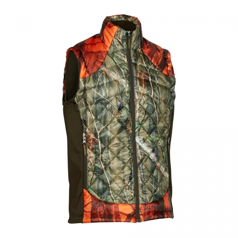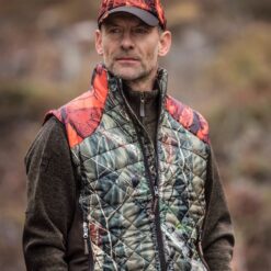 Prešívaná zateplená vesta Cumberland Quilted Blaze Waistcoat. Moderná funkčná vesta pre poľovníka a každého nadšenca prírody. Prevedenie v signálnej kamufláži GH Blaze.