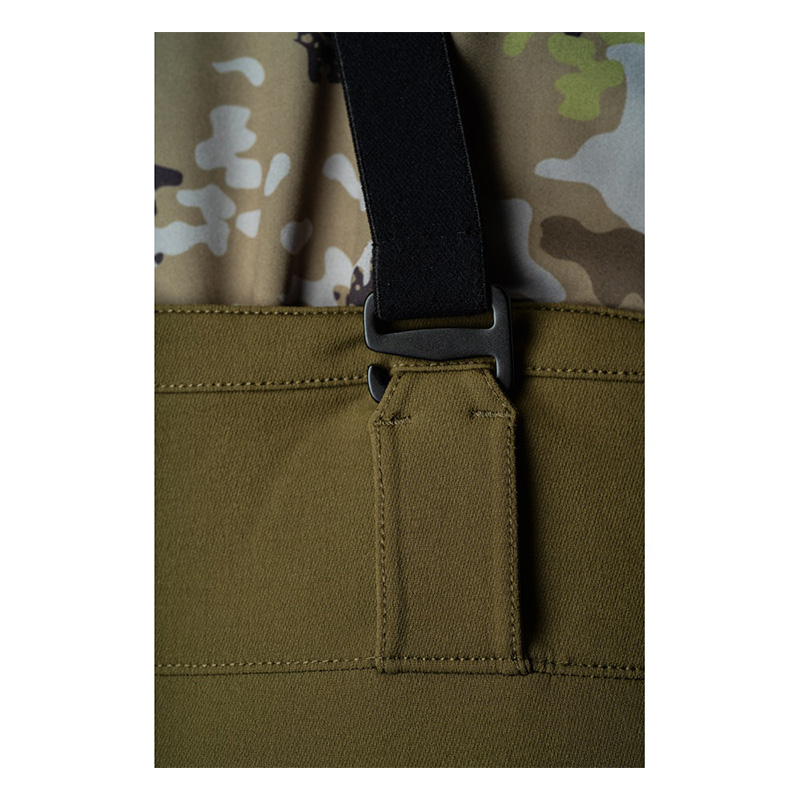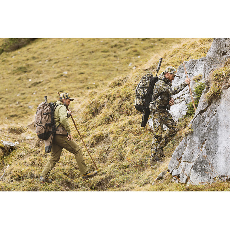 Lovecké nohavice HunTec Resolution majú dve bočné vrecká a veľké vrecko na ľavom stehne na uloženie loveckého vybavenia. Má vetrací otvor na oboch nohách na boku, ktorý je možné otvoriť v horúcich dňoch.