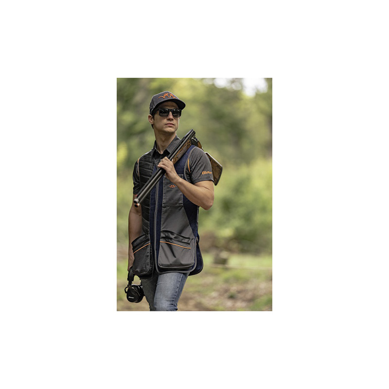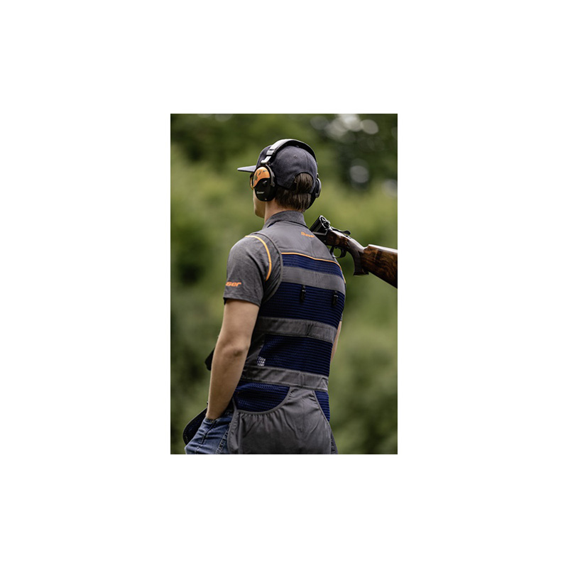 Táto strelecká vesta bola špeciálne vyvinutá pre súťažnú brokovú streľbu. Poťah na pravej alebo ľavej strane podporuje intuitívnu oporu pažby. Otvorená sieťovaná štruktúra celej vesty zaisťuje vysokú priedušnosť – s úplnou voľnosťou pohybu. Na prednej strane sú dve predné vrecká. Potrebujete bezpečne uložiť bankomatovú kartu? To sa dá ľahko urobiť v trochu hlbšom malom náprsnom vrecku, ktoré zdobí oranžové logo Argali. Na zadnej strane je kvalitná strelecká vesta vybavená priechodným vreckom, klipmi na pripevnenie súťažného čísla a nápisom Blaser na krku.